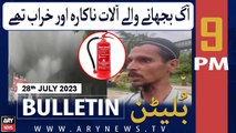 ARY News 9 PM Bulletin | Fire extinguishers were ineffective and damaged! | 28th July 2023