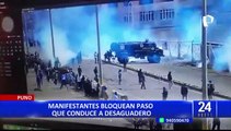 Puno: Enfrentamiento con manifestantes deja 2 policías heridos y un vehículo de la PNP incendiado