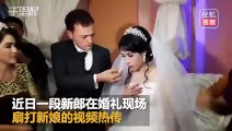 The bride teased the groom at the wedding and was slapped by him -