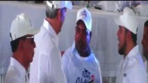 La gobernadora Mirian Brea, supervisa los trajanos del montaje de la tarima a fin de garantizar que todo marche bien para tan importante evento.