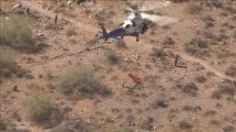 Rescate desastroso: Esta camilla con una mujer herida gira a gran velocidad durante un dramático rescate en helicóptero