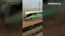 Las inundaciones causadas por temporal arrastra coches en Cobisa (Toledo)