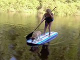 This woman was trying out paddle boarding for the first time, while her nephew watched her. After he walked aside, the woman got ready to ride the paddleboard. However, as soon as she attempted to stroke the water with the paddle, she lost her balance and humorously fell face first into the water.