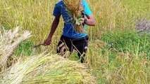 Agricultural in Nepal cutting Rice plants