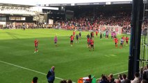 Luton Town players applaud the away fans at Birmingham