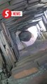 Video from the state trooper's dashcam shows the moment the now-arrested Derek Lobo, 31, flees the scene - taking the officer with him.