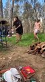 Occurred on September 24, 2022 / Murchison, Victoria, Australia<br /><br />: "One day at camping, a little fella tried to sneak up behind big fella to knock him over and it backfired."