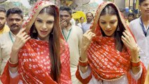 Controversial celebrity Sherlyn Chopra visited Lalbaugcha Raja this morning to seek Bappa's blessings. She was seen in white suit and carried a gorgeous red dupatta.
