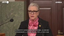 Milano, 6 ott. (askanews) - Il Premio Nobel per la Pace 2023 è stato assegnato a Narges Mohammadi, attivista e giornalista iraniana attualmente in carcere, "per la sua lotta per i diritti delle donne in Iran, la promozione dei diritti umani e della libertà per tutti", è la motivazione del Comitato per il Nobel che si augura anche che l'attivista possa ritirare di persone l'onoreficenza.Se le autorità iraniane prenderanno la decisione giusta, la rilasceranno - ha detto Berit Reiss-Andersen, presidente del Comitato Nobel - così potrà essere presente per ricevere questa onorificenza, che è ciò che ci auguriamo in primo luogo".