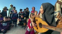 Palestinian woman plays oud to cheer children amid Israel-Hamas war