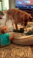 Cooper the Golden Gently Meets 1-Year-Old Niece __ ViralHog(360P)
