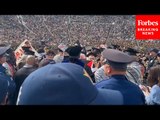 Thousands of demonstrators carried flags and flares and chanted pro-Palestinian slogans as marchers heard calls for world leaders to condemn Israel's actions. <br />More than 1,000 officers were deployed by the Metropolitan Police before Saturday's demonstration in the capital, with police saying in advance that anyone showing support for Hamas may face arrest. Report by Covellm. Like us on Facebook at http://www.facebook.com/itn and follow us on Twitter at http://twitter.com/itn