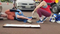 Motociclista sofre fratura exposta ao se envolver em acidente na Rua Vinícius de Moraes, no Bairro Brasília