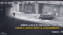 VÍDEO: se salva de milagro de ser aplastado por una plancha de acero que destroza su coche