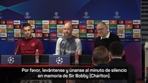 Erik ten Hag led the tributes to Sir Bobby Charlton during Tuesday's match against FC Copenhagen as he walked out from the tunnel with a bagpipe player - before laying a wreath on the side of the pitch in honor of the United legend.<br /><br />United are facing the Danish outfit in the Champions League just three days after Sir Bobby - who is widely regarded as one of the greatest players to ever grace the game - passed away at the age of 86 following a battle with dementia. <br /><br />The gifted footballer was born in Ashington, Northumberland, on October 11, 1937, and played an integral role in England's 1966 World Cup glory. He made 758 appearances for United while also earning 106 caps for his beloved country and has a stand named after him at Old Trafford.<br /><br />And ahead of kick-off, the club held a special pre-match tribute to Sir Bobby which ended with a minute's silence. <br /><br />As the players gathered in the center circle, Ten Hag emerged from the tunnel behind the bagpipe player.<br /><br />He was joined on either side by former United goalkeeper Alex Stepney, who was a team-mate of Sir Bobby at the club, and youth team captain Dan Gore.<br /><br />Ten Hag laid the wreath in the center circle as a minute's silence was observed before he moved it to the side of the pitch. <br /><br />A singular bagpipe player coming out onto the Old Trafford pitch has been seen before back in 2008 on the 50th anniversary of the Munich air disaster when United faced Man City.<br /><br />It was also seen during the first game at the ground following Sir Matt Busby's passing when they faced Everton in January 1994. <br /><br />A wreath was also placed on Sir Bobby's seat in the Director's Box, while he was remembered on the front cover of the Matchday program.<br /><br />Players and staff of both sides similarly wore black armbands in memory of the United legend, while Copenhagen supporters could be heard singing 'One Bobby Charlton' ahead of kick-off in what was a nice touch, and they also unfurled a banner that read: 'Rest in peace, Sir Bobby Charlton.'<br /><br />Several supporters also paid tribute to Sir Bobby outside Old Trafford ahead of kick-off. <br /><br />It comes after he was commemorated at United's UEFA Youth League fixture on Tuesday afternoon before the Under 19 side lost 1-0 against their Copenhagen counterparts. <br /><br />Meanwhile, both Paul Scholes and Rio Ferdinand paid tribute to the United legend when working pitchside for TNT Sports.<br /><br />Ferdinand said: 'He was just a fantastic human being first and foremost. A wonderful football player but the way that he carried himself as a human being was the thing that stood out for me above everything. <br /><br />'The football club ran through his veins. He just loved this football club like not many I've ever seen before.<br /><br />'If you look at his life and what he achieved: Ballon d'Or winner, World Cup winner, European Cup winner. He won multiple trophies here, (yet) he still gave you so much time.<br /><br />'I had special moments with him at different times of my career here. He had a real calming voice and influence and he was so