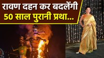 दिल्ली में आयोजित हुए लव कुश रामलीला में रावण का दहन करने के लिए कंगना रनौत को न्यौता भेजा गया था. रावण का वध करते हुए एक्ट्रेस का एक वीडियो सामने आया है. इस वीडियो में वे बाण चलाती नजर आ रही हैं, हालांकि, इस दौरान उनके तीन निशाने चूक जाते हैं. वीडियो में कंगना जय श्रीराम का नारा लगाती हुई बाण पकड़ती नजर आ रही हैं. वे तीन बार तीर फेंकने की कोशिश करती हैं, लेकिन तीनों बार एक्ट्रेस की कोशिश बेकार जाती है. जिसके बाद कमेटी का एक सदस्य उन्हें तीर चलाने में मदद करता है और रावण का दहन करता है. वीडियो देख यूजर्स कर कंगना रनौत को ट्रोल अब इस वीडियो के आने के बाद से सोशल मीडिया पर यूजर्स उन्हें जमकर ट्रोल कर रहे हैं. एक यूजर ने लिखा-'बाण चले ना चले पर नवाबी न घटे', एक और यूजर ने लिखा- "रील लाइफ कंगना वर्सेस रियल लाइफ कंगना....ये दावा करती हैं कि ये टॉम क्रूज से अच्छा स्टंट करती हैं. हाहाहा...एक भी निशाना नहीं लगा. वैसे भी सच ही झूठ को मार सकता है. " <br /> <br />Bollywood Actress Kangana Ranaut breaks 50 years record and becomes first lady to perform Ravan Dahan in Delhi Ramleela Maidan. In the Video, Kangana Ranaut fails to shoot the arrow at Raavan and now public trolls her and posting funny comments. <br /> <br />#KanganaRanautRavanDahanArrowShootFailsInsideVideo <br /> <br /><br /> ~HT.97~PR.111~ED.120~