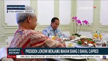 Presiden Joko Widodo (Jokowi) mengundang tiga bakal capres makan siang bersama di Istana Merdeka, Jakarta, Senin (30/10/2023). Acara makan siang tersebut berlangsung mulai pukul 12.30 WIB.<br />Jokowi bersama tiga bacapres yaitu Prabowo Subianto, Ganjar Pranowo, dan Prabowo Subianto terlihat mengenakan batik. <br /><br />Keempatnya duduk sambil berhadapan. Jokowi berhadapan dengan Anies sedangkan Prabowo berhadapan dengan Ganjar.<br />Keempatnya menyantap makanan di sebuah ruangan kecil di Istana Merdeka. Adapun makanan yang dihidangkan berupa ayam rolade, lontong, rendang, orange jus, ayam kecap, dan tahu bacem.