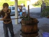 Le Pressi-mobile était de passage à Écommoy (Sarthe) le vendredi 3 novembre 2023. Ce pressoir ambulant permet la transformation de pommes en jus.