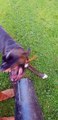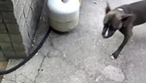 This dog showcased some great enthusiasm while playing with a leaf blower. They stood with their mouth wide open on the opposite side of the fence while someone continuously blew air onto their face.<br /><br />“The underlying music rights are not available for license. For use of the video with the track(s) contained therein, please contact the music publisher(s) or relevant rightsholder(s).”