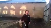 This girl was chased by her farm rooster as she was riding her bike. Later she thought it was funny and wanted to continue the game so decided to tease him with her foot and get him to chase her. She did succeed in doing so and was chased by the bird around the farm.<br /><br />The underlying music rights are not available for license. For the use of the video with the track(s) contained therein, please contact the music publisher(s) or relevant rightsholder(s).