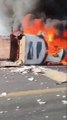 Dos tráileres chocaron a la altura del poblado de San Pedro Bajaras; uno de los vehículos se incendió.