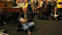 Milano, in sala non c'è posto per Pisapia. Il sindaco si siede per terra