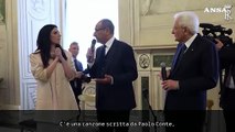 Mattarella riceve il ventaglio dal Presidente dell'Associazione stampa parlamentare in Quirinale