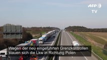 Vor dem Übergang in Dorohusk stehen nach Polizeiangaben 750 Lkw in einer 18 Kilometer langen Schlage.