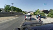 TRABZON (AA) - Trabzon'da dün fırtınanın denizde oluşturduğu dev dalgaların otomobili sürüklemesi ve vatandaşların kaçışı, bir teknenin güvenlik kamerasına yansıdı.<br />Karadeniz'de fırtınayla oluşan dev dalgalar, Ortahisar ilçesindeki Faroz Limanı'nda da etkili oldu.<br />Limanda demirleyen bir teknenin güvenlik kamerasına yansıyan görüntülerde, dalgaların şiddetiyle limanın duvarlarını aşan deniz suları yolu kapladı.<br />Seyir halindeki bir otomobilin, üzerine gelen dalgaların etkisiyle sürüklendiğinin görüldüğü kamera kayıtlarına, 2 kişinin dalganın geri çekilmesiyle koşarak bölgeden uzaklaşması da yansıdı.<br />Otomobiliyle bölgeden uzaklaşmayı başaran sürücü ve 2 kişi, yara almadan kurtuldu.