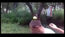 Il tente d'enlever la pomme qui est sur la tête de son pote