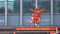 Luton Town celebrate promotion with their fans