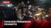 Mobil boks nopol B 948 CCH terguling di Tol Dalam Kota KM 05 200 Kuningan, Jaksel. Mobil mengangkut sayur itu melintang di tengah jalan dan memicu kemacetan, Sabtu (9/12). Muatan sayur mayur yang dibawa dipindah untuk memudahkan evakuasi mobil. <br />