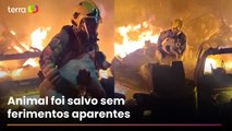 Em Sacramento - MG o corpo de bombeiros executou um salvamento desafiador. Um cachorro pitbull caiu em um buraco dentro de uma obra.