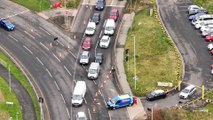 Drone footage of severe traffic on Eastern Road causing by shut lane for roadworks - Marcin Jedrysiak