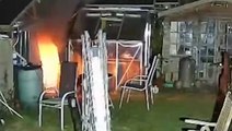 This shocking footage shows two neighbours coming to blows over gardening tools - after one attacked the other with a pair of secateurs (footage released by Crown Prosecution Service)