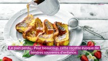 Recette Dessert <br /><br />Pour le petit-dej, le goûter ou le dessert, on se régale avec l'une des recettes les plus simples et connues de la cuisine française : le pain perdu ! <br />Une recette gourmande et anti-gaspillage, bref que demande le peuple ?! <br /><br />Ingrédients: <br /> - 1 pain rassis (ou frais) <br /> - 3 oeufs <br /> - 3 c. à soupe de sucre <br /> - 1 sachet de sucre vanillé <br /> - 50 cl de lait <br /> - beurre <br /> <br /><br />Voir recette sur le site: https://www.ptitchef.com/recettes/dessert/pain-perdu-fid-1566897 <br /><br />