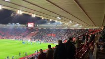 Crawley Town fans celebrate Crawley Town win over Fulham