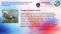GRADE 08-LISTENING-Feugian Steamer Ducks