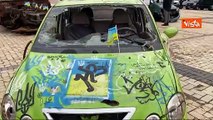 In piazza Mykhailivska a Kiev la mostra dei mezzi russi distrutti dall'esercito ucraino