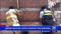 Gatito es rescatado tras derrumbe en Arequipa: estuvo atrapado por 20 horas