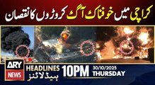 Fire Breaks Out at Tire Warehouse in Moach Goth || ARY News 10 PM Headlines || 30th Oct 2025