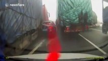 A man showed off his rapid reflexes - as he dodged a large snowfall from a roof.<br /><br />The video filmed in Zhangjiajie City, Hunan Province, China shows Jiang Kaixin waiting outside a building on February 7.<br /><br />Suddenly, he is forced to sprint backwards, narrowly avoiding the large snowfall which tumbles from the roof above him.