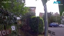 A 70-year-old man has been pulled from his car relatively unscathed after it fell more than 10 metres onto light rail tracks in Glebe in Sydney’s inner west.