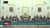 President Mahmoud Abbas met on Tuesday with his Turkish counterpart, Recep Tayyip Erdoğan, at the presidential palace in Ankara as part of an official visit to Türkiye, during which they discussed the latest developments in the Palestinian arena. teleSUR<br /><br />Visit our website: https://www.telesurenglish.net/ Watch our videos here: https://videos.telesurenglish.net/en<br />