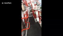 Dramatic moment crane worker manages to get away from danger as storm approaches Tampa, Florida
