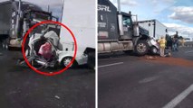 Puebla: Tráiler aplasta por completo coche en plena autopista; se reportan dos personas sin vida y tres lesionados