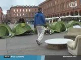 Toulouse : Les Enfants de Don Quichotte, Place du Capitole - Toulouse - Les Enfants de Don Quichotte ont installé leur campement sur la Place du Capitole à Toulouse. (Pour obtenir les droits d’exploitation commerciale de cette vidéo, veuillez contacter contact@wizdeo.com)