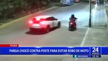 Piura: intentaron huir de ladrones en su moto y terminaron estrellándose contra poste