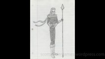 A pencil sketch, of an amazon warrior. Drawn by Scott Snider. Uploaded 04-15-2024.