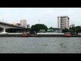 Cargo barges moving up the Chao Phraya River at Bangkok